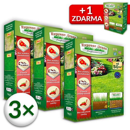 Express Grass Professionnel - 3 krabice na 200 m² + 1 balení ZDARMA